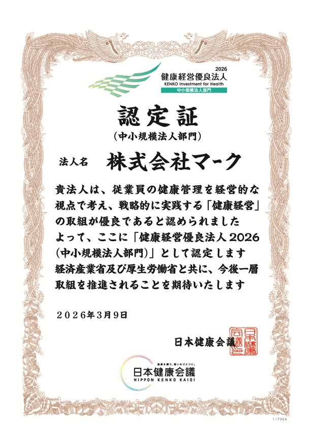 「健康経営優良法人2026(中小規模法人部門)」に認定されました。